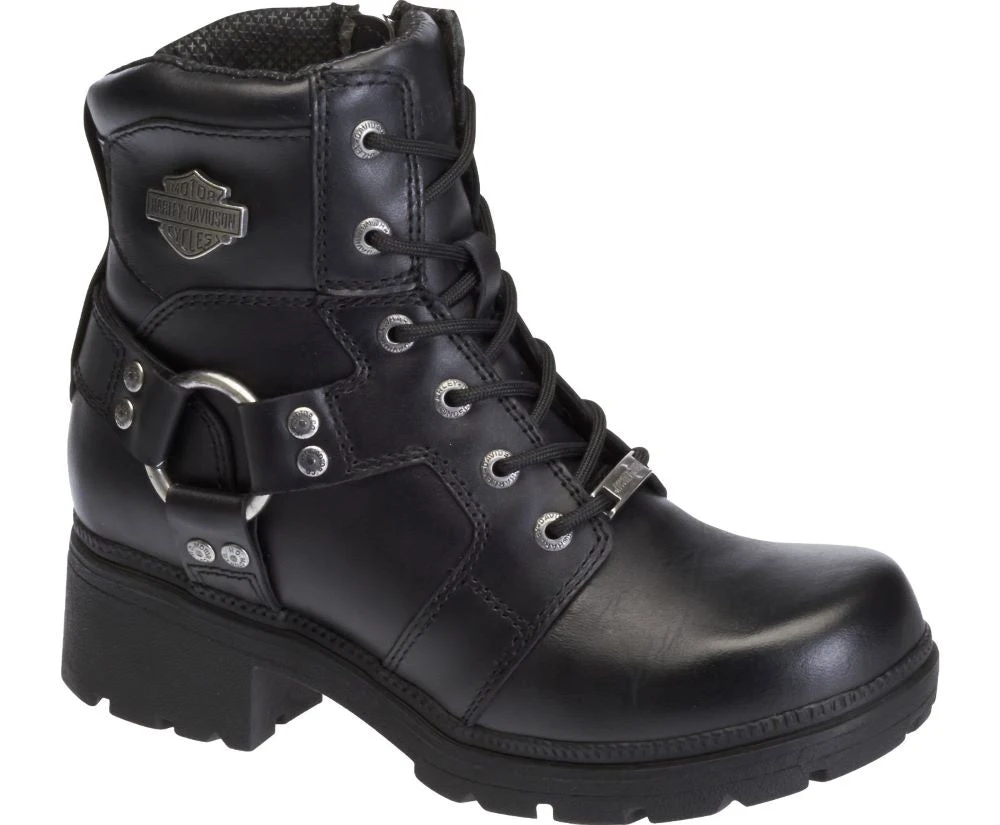 - Designed with a round toe, Harley® logo badging on the bottom lace, three strap riveted side O’Ring, finished with a Harley-Davidson® Bar & Shield on the upper shaft