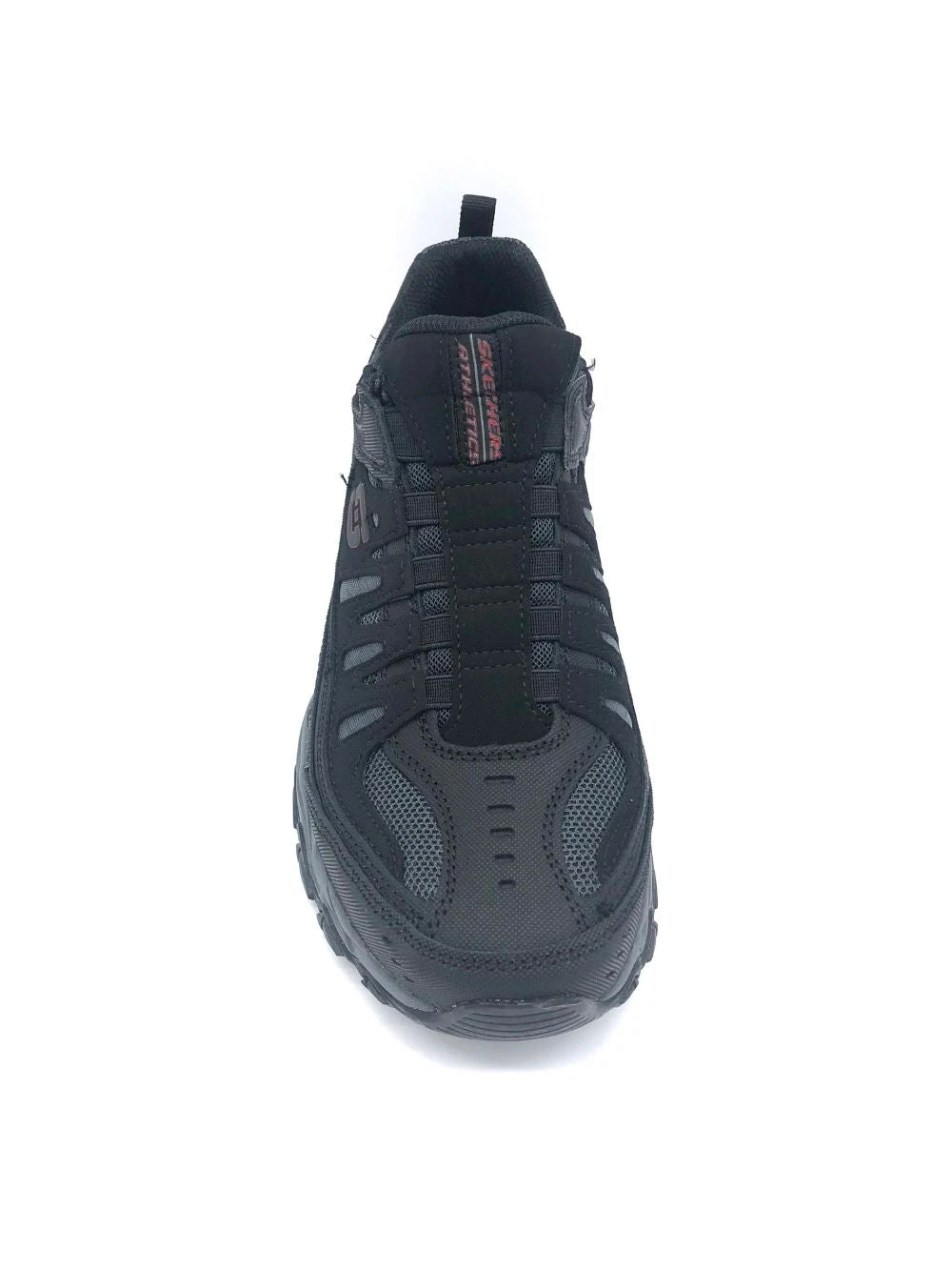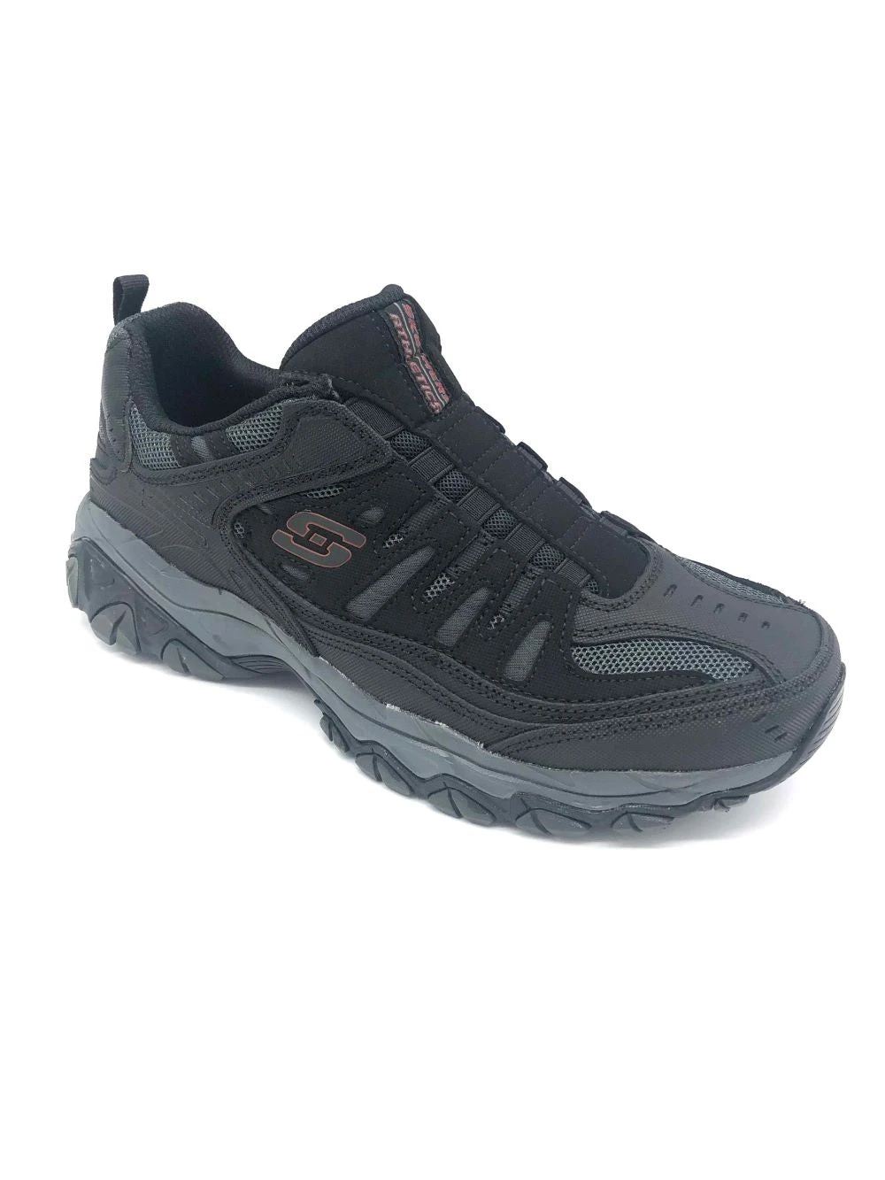 A true classic gets even better with Skechers After Burn – Memory Fit. This slip-on athletic trainer features a leather, synthetic and mesh upper with cushioned Memory Foam insole.